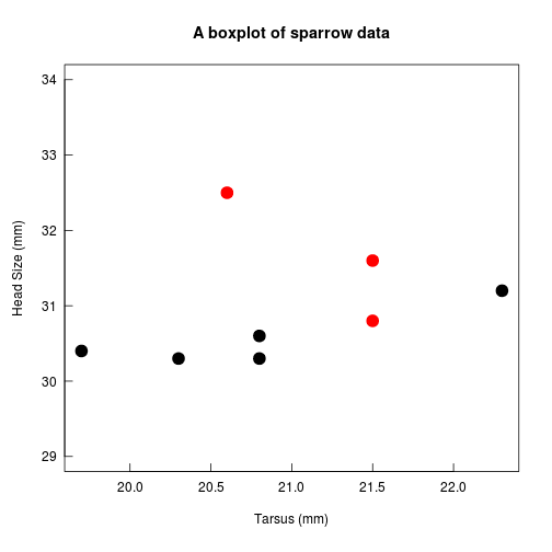 main = 'A boxplot of sparrow data',